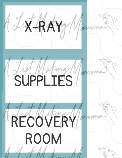 - 6 supply labels: supplies, swabs, forms, dental, scrubs, bandages
